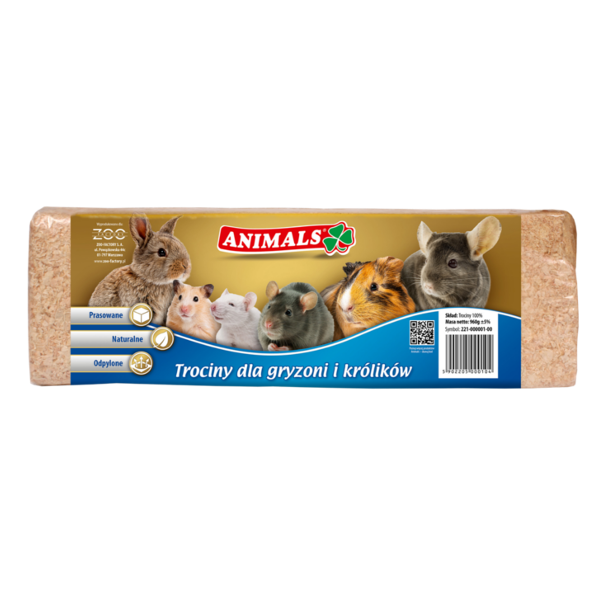 Az Animals natúr forgács ideális alom rágcsálók és nyulak számára.