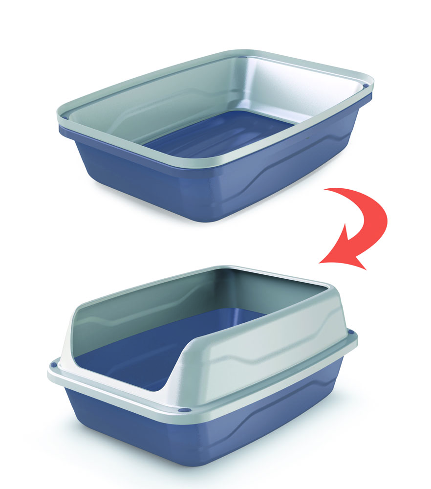 Magas, speciálisan profilozott kerettel van felszerelve, amely megakadályozza az alom kiszivárgását.