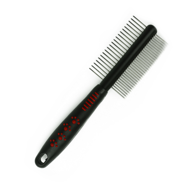 Fémfésű kétféle sűrűséggel (vékony és sűrű tűvel) a szőr kibontására.